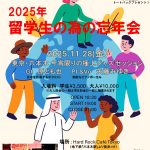 2025年10月17日 / 最終更新日時 : 2025年10月17日 サイト管理者 2025年 留学生の為の忘年会のご案内 今年もまた忘年会の季節となりました。 関係のある外国の方々をお呼びして楽しいパーティーを催します。 有名なジャズバンドによる大盛り上がり音楽パーティーです。 食べ放題、飲み放題、ビンゴゲーム、ダンス、沢山のプレゼントを用 […]